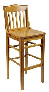 The 7451C restaurant wood bar stool features classic school house motif back with matching solid wood finish seat