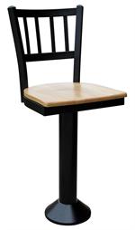 Features popular jail house motif metal frame backrest with 90 degree return swivel seat
