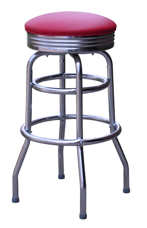 Model 1971 is probably our most popular retro bar stool.  Our 1950s style bar stool features a full pan that goes around the seat and on the underside of the seat too.  Built for commercial use, model 1971 is a swivel bar stool that works almost anywhere.