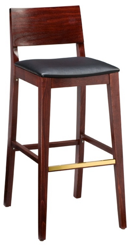 The 2438 wood bar stool features the latest trendy half-back design with upholstered vinyl seat